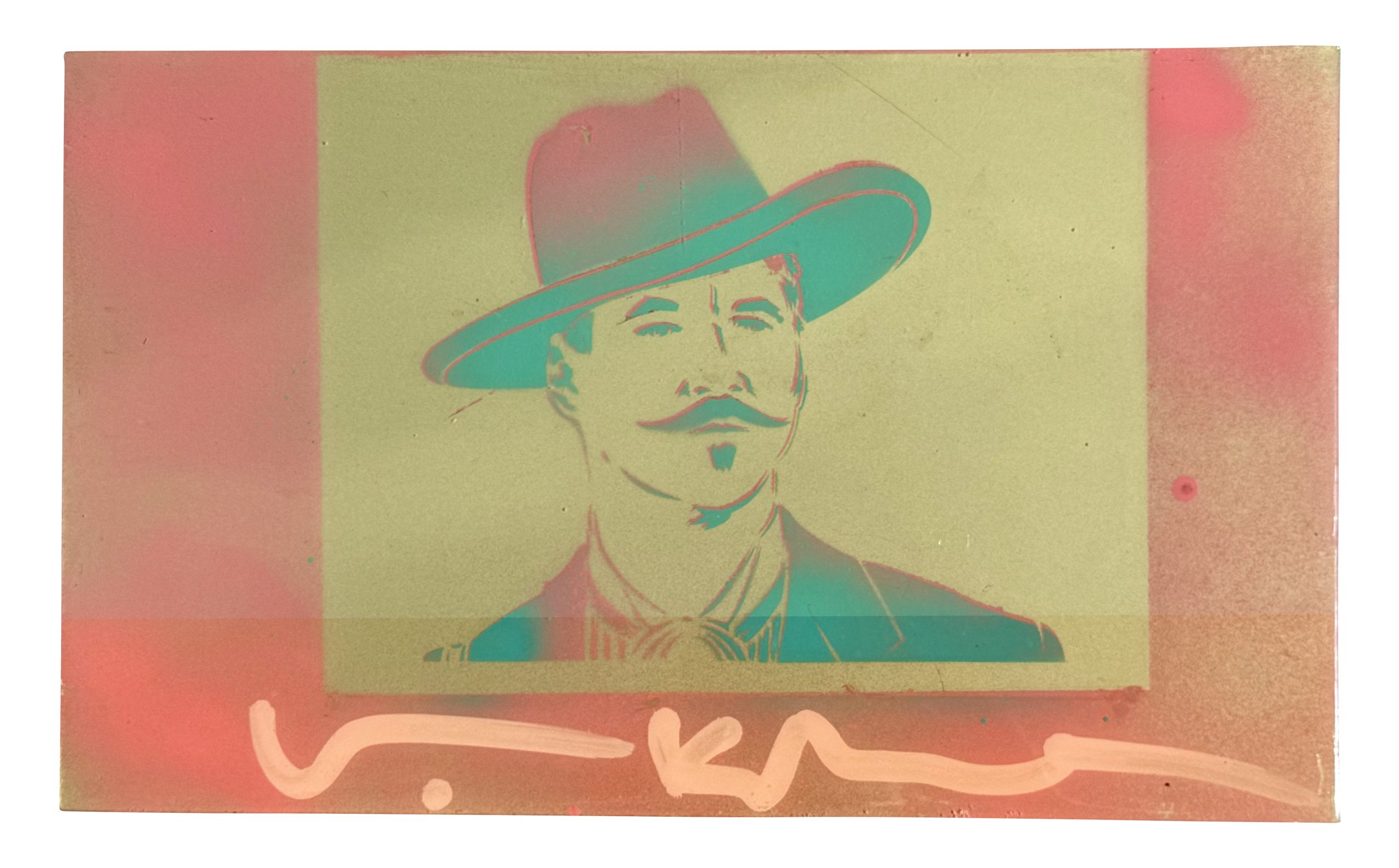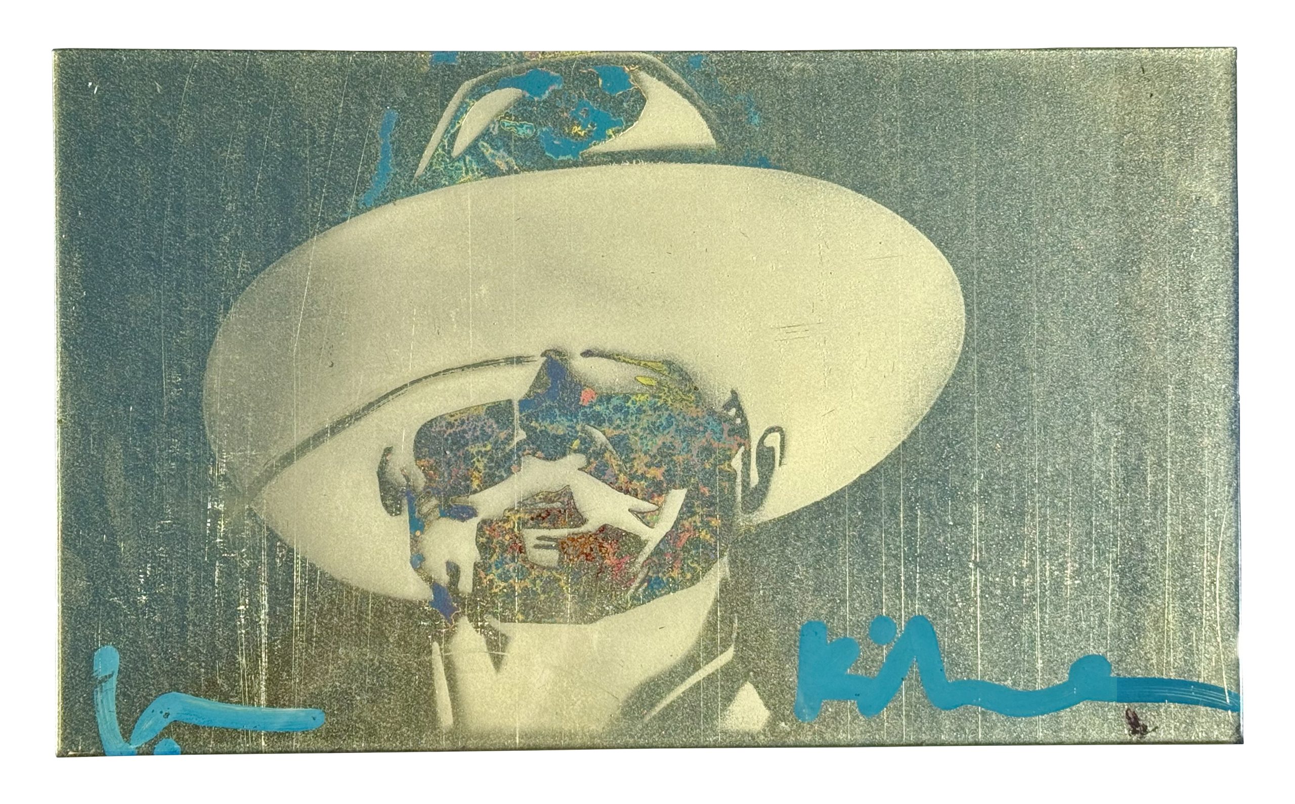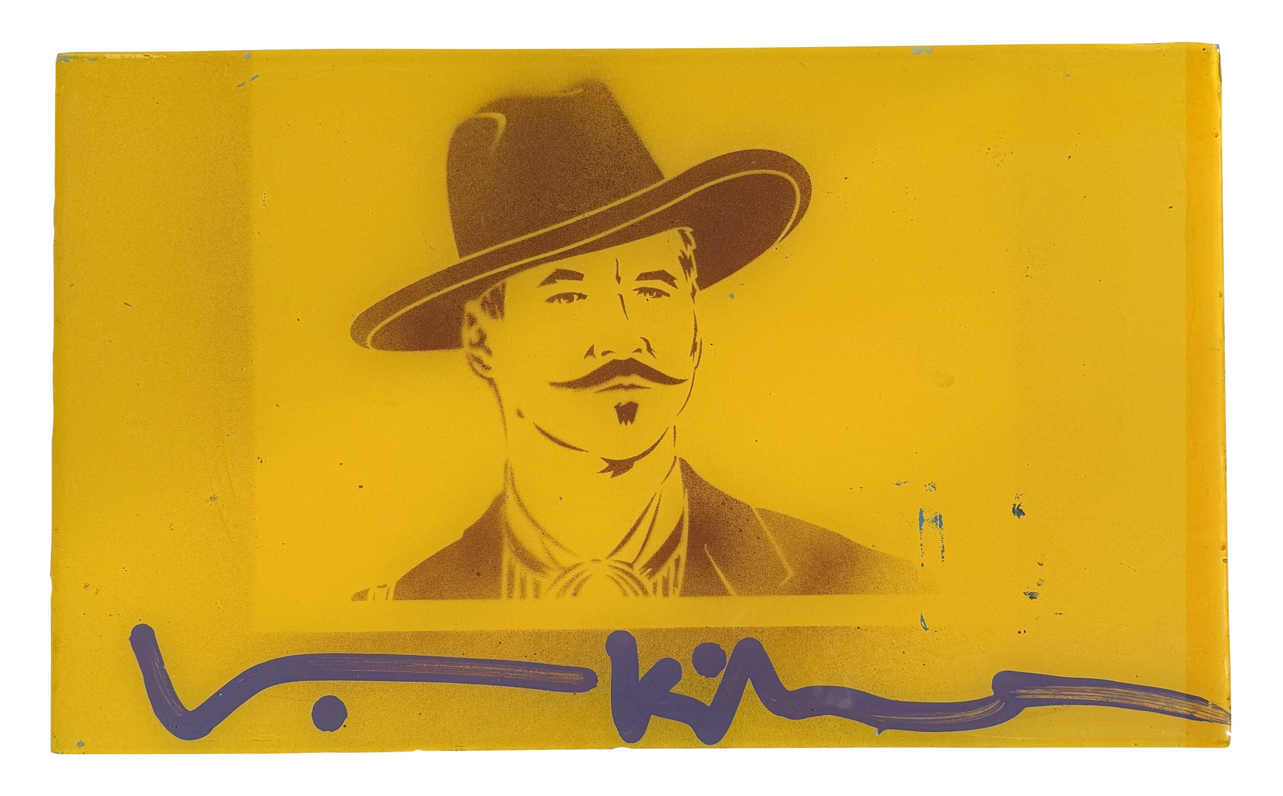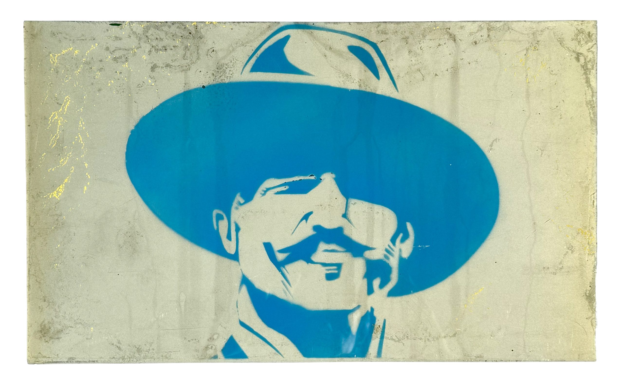 Signed LR in marker by artist, rare studio note by Artist on verso: “Just Re-Stencil Save Background”